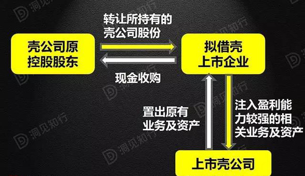 2、擬借殼企業控股股東取得殼公司的原有業務和資產后將其轉讓給殼公司原大股東,以換取后者所持有的殼公司股份,雙方差額部分以現金補足。