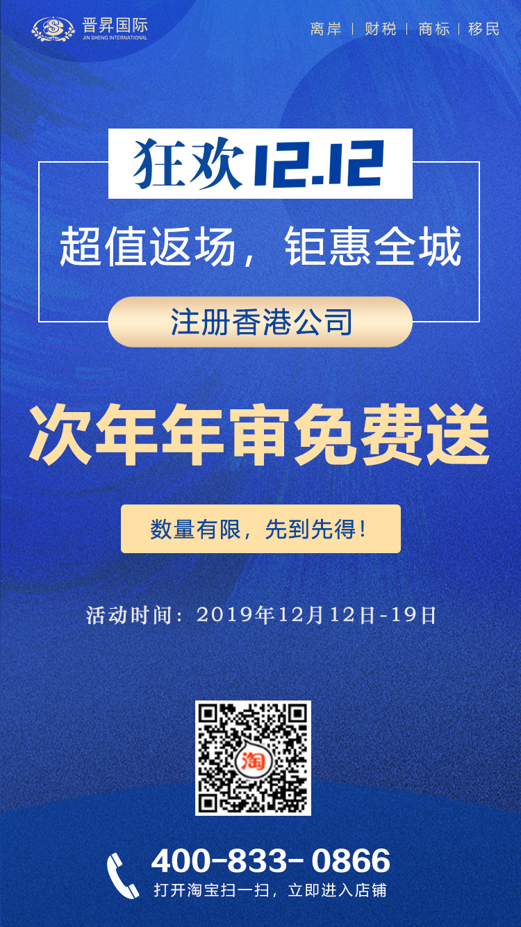 活動期間,凡原價注冊中國香港公司,可免次年年審服務費。