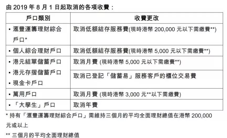 又一重大利好!中國香港匯豐銀行正式宣布:8月1日起,客戶持有或開立“個人綜合理財戶口”不設戶口最低結余要求,取消最低全面理財總值要求及低額結存服務費,單名及聯名個人戶口均包括在內。同時,匯豐取消多個個人儲蓄戶口類別的月費、年費及柜位交易費。