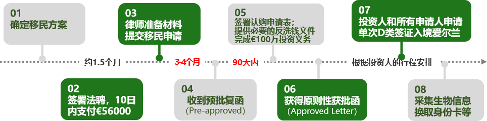 愛爾蘭投資移居計劃(The Immigrant Investor Programme, IIP)自2012年開放,主要面向想要投資移居愛爾蘭的非歐盟國家公民。投資移居投資移居的最低投資額為100萬歐元,最短投資期為3年,家庭凈資產需達到最低200萬歐元 。愛爾蘭移居局也公布了2019年的申請窗口,具體如下: