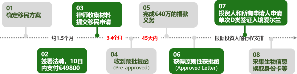 個人捐贈50萬歐元至愛爾蘭公共設施(比如教育、藝術、公益項目等)。如果團體捐贈,捐款的金額可以降低至40萬歐元。捐款方式雖然無法獲得回報,但是它的優勢在于獲批速度最快,而且所要求的材料也相當簡單。