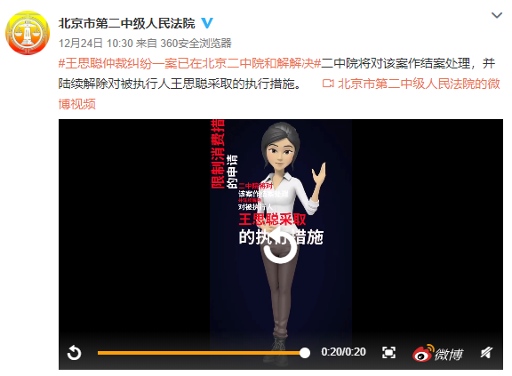 12月24日,王思聰涉案的三個(gè)服務(wù)合同糾紛案件撤回,上海市靜安區(qū)人民法院對其發(fā)布的三個(gè)限制消費(fèi)令也已撤銷。王思聰已經(jīng)在12月2日和發(fā)起仲裁的嘉興璟字悌為股權(quán)投資基金合伙企業(yè)達(dá)成和解協(xié)議,王思聰履行了和解協(xié)議約定的第一筆款項(xiàng)5000萬元。