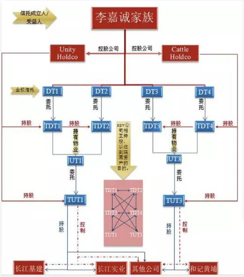 李嘉誠設(shè)立了至少4個(gè)信托基金,分別持有旗下公司的股份,并對每個(gè)信托基金指定了受益人。
